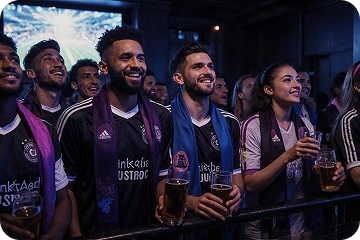 Freu dich auf eine große Auswahl an Bieren, kreativen Biercocktails und frisch zubereiteten Speisen. Dank moderner 4K-Bildschirme erlebst du jedes Spiel gestochen scharf, während das kraftvolle Soundsystem für echtes Stadion-Feeling sorgt. Panoramafenster mit Blick auf das Spielfeld, perfekt platzierte Screens sowie gemütliche Sofas und Sessel garantieren beste Sicht und maximalen Komfort – egal, wo du sitzt.