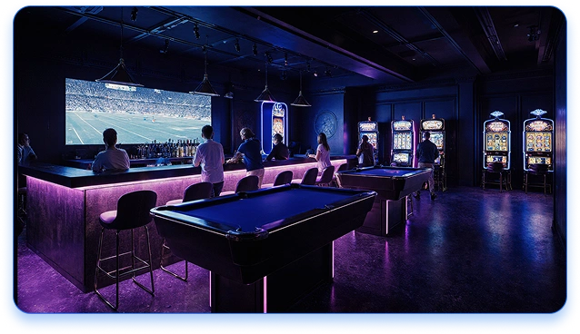 Diese Einrichtung ist ausschließlich für Erwachsene (ab 18 Jahren) bestimmt. Alle Spielautomaten, Turniere und Veranstaltungen dienen ausschließlich der Unterhaltung und beinhalten kein Glücksspiel oder Wetten um echtes Geld. Es können keine Geldpreise gewonnen werden. Mit Betreten der Räumlichkeiten erklären Sie sich mit diesen Bedingungen einverstanden und bestätigen, dass Sie mindestens 18 Jahre alt sind. Wir fördern verantwortungsvolle Unterhaltung und dulden kein exzessives Spielverhalten.